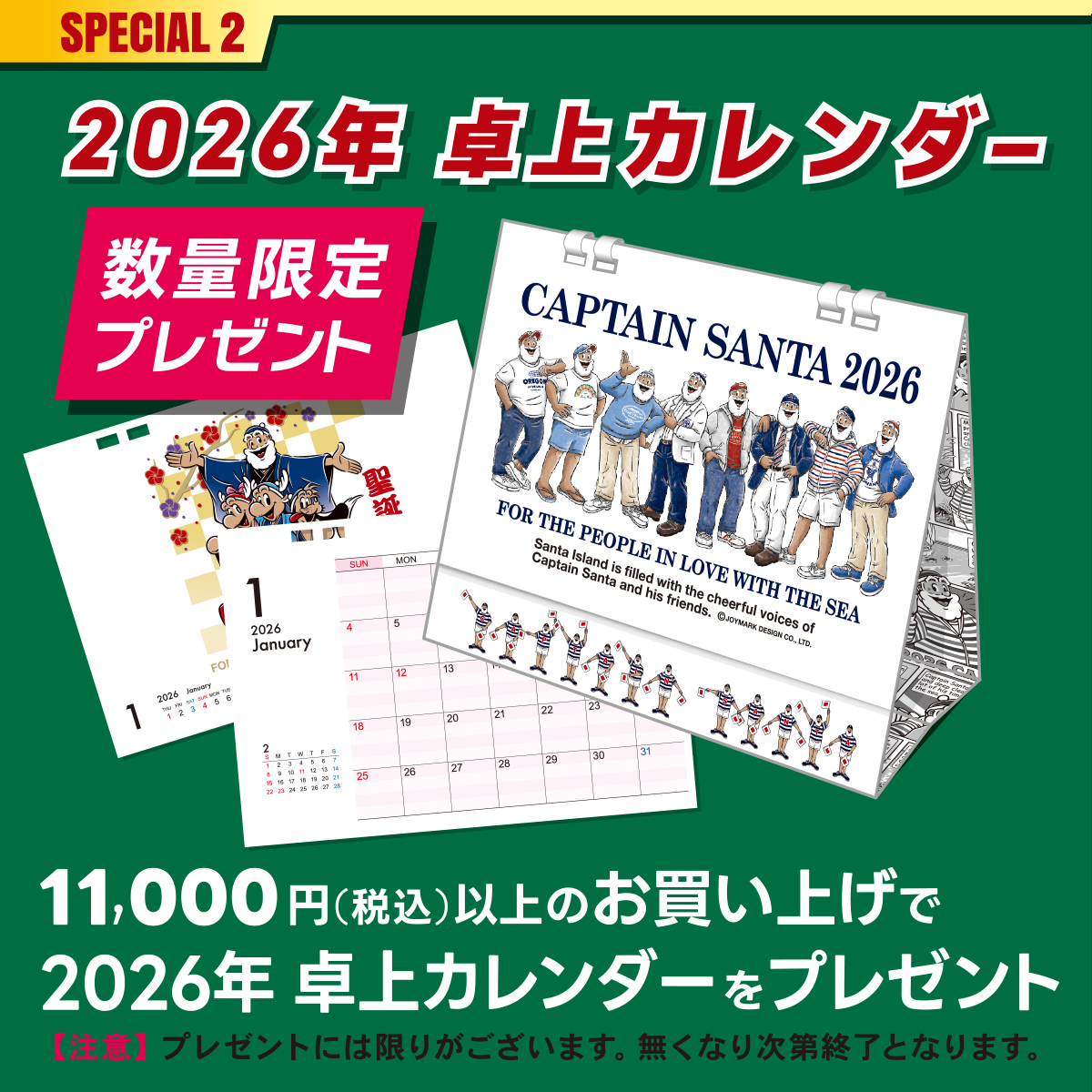 2)11,000円以上のお買い物で2026年卓上カレンダーをプレゼント